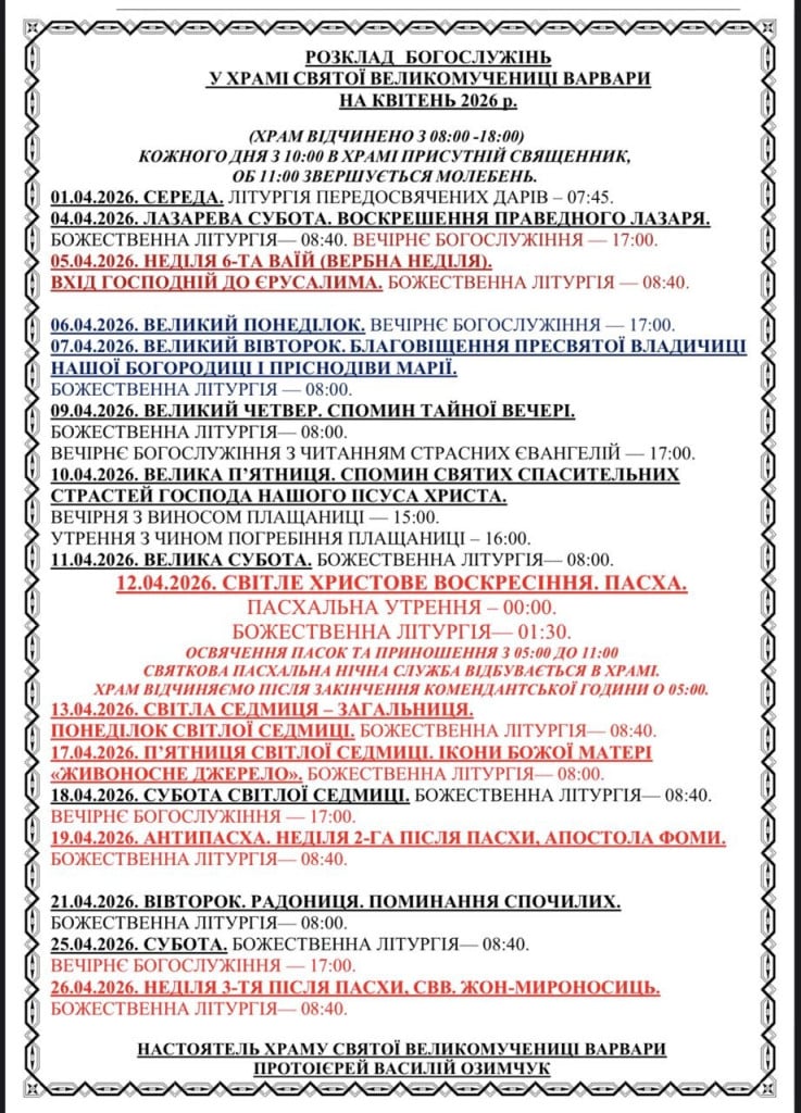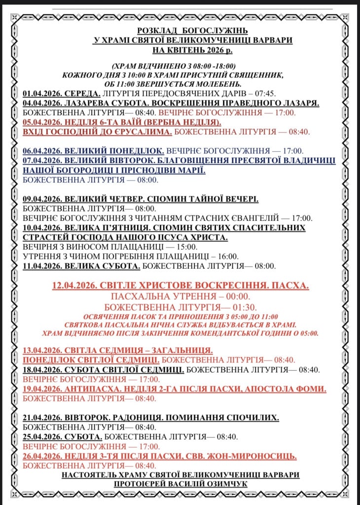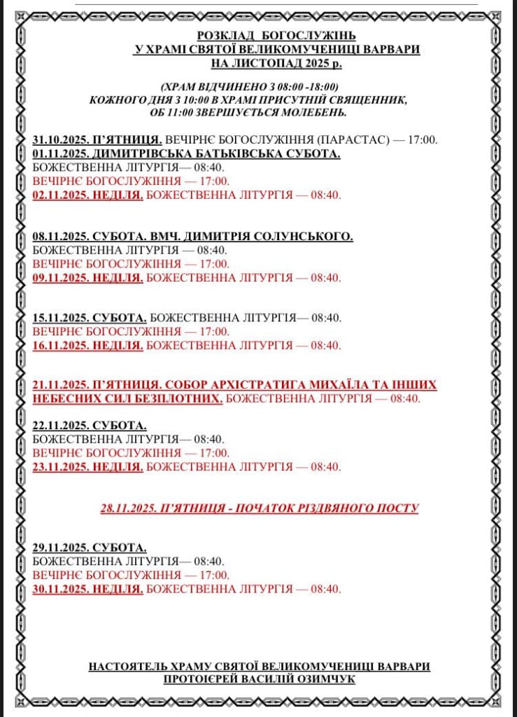 РОЗКЛАД БОГОСЛУЖІНЬ